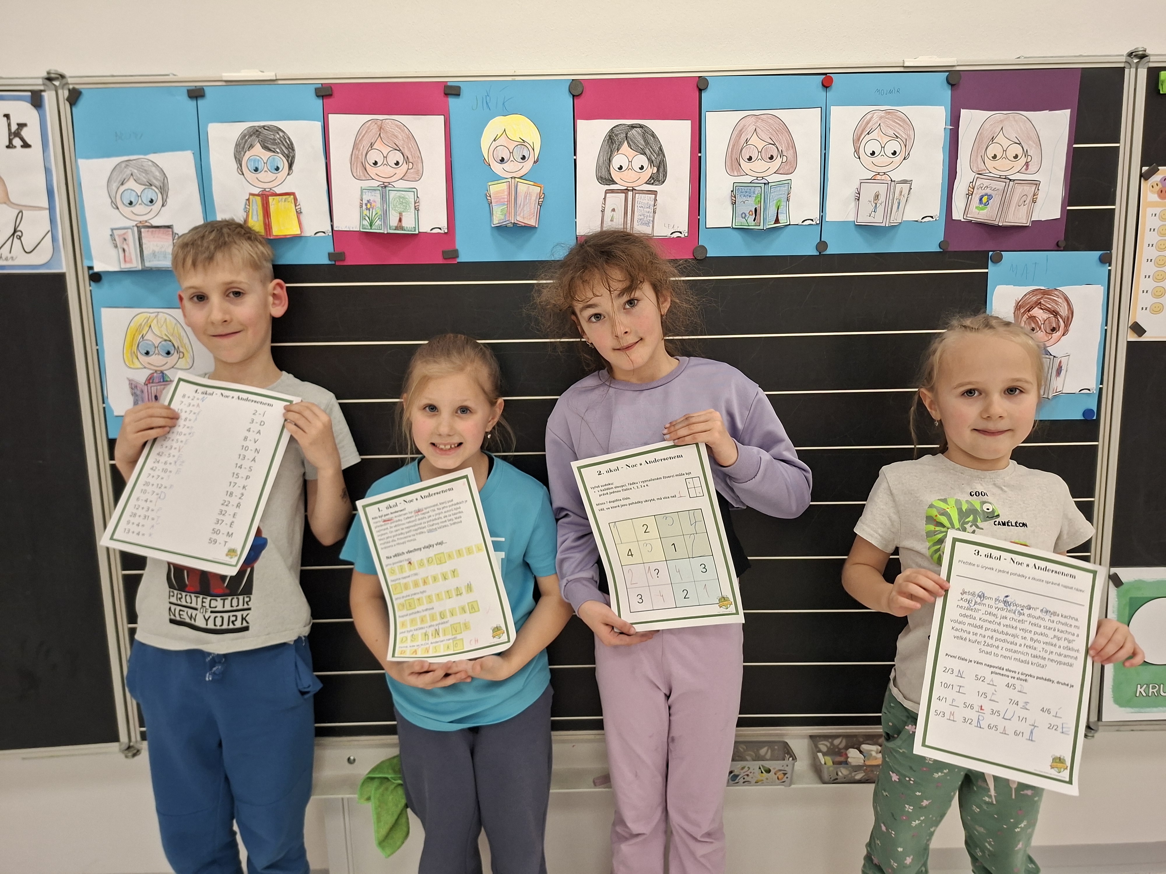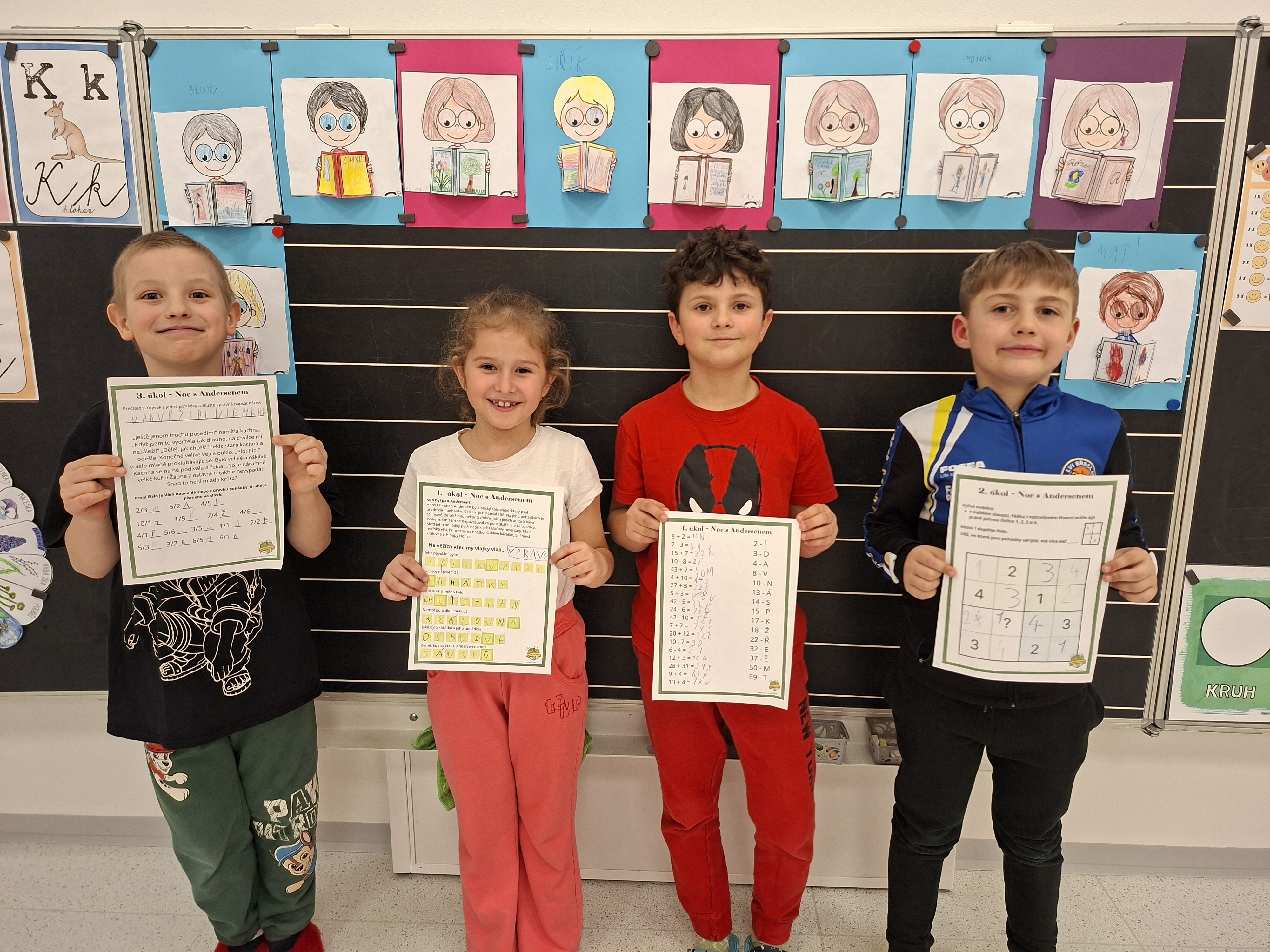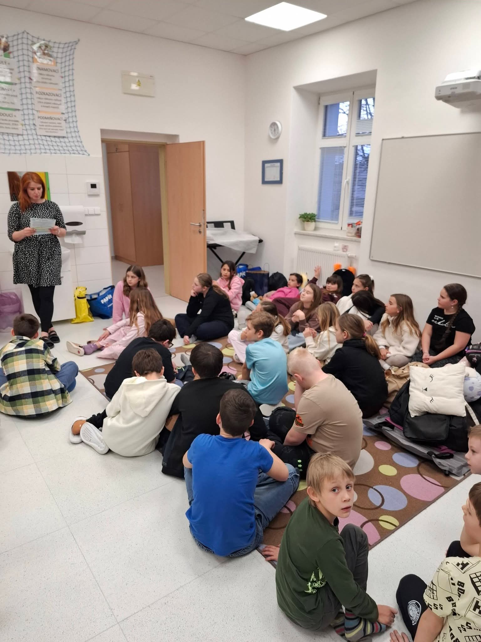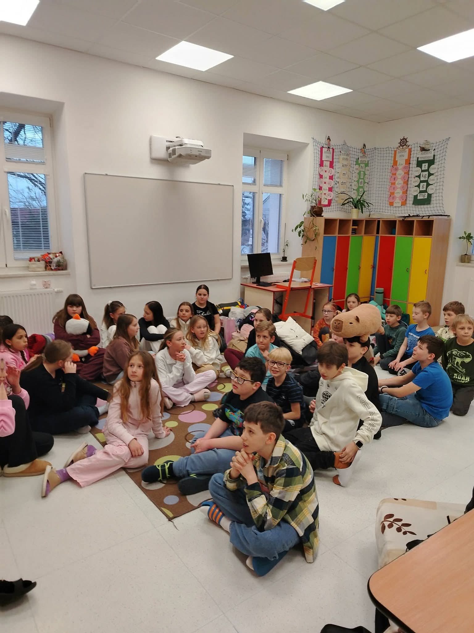 I letos se konalo přespání ve škole. Tentokrát se spojila 1. a 2. třída a plněním úkolů ve skupinkách zjišťovali, kam pan Andersen ukryl své pohádky. Děti z 3., 4. a 5. třídy si připomněly nadcházející Den vody a společnými silami luštily úkoly týkající se vody. Poté pro všechny následovala večeře a překvapení ve formě diskotéky v tělocvičně. Potom už na děti čekala pohádka a spacáky. Věříme, že si děti přespání ve škole užily a budeme se těšit zase za rok!